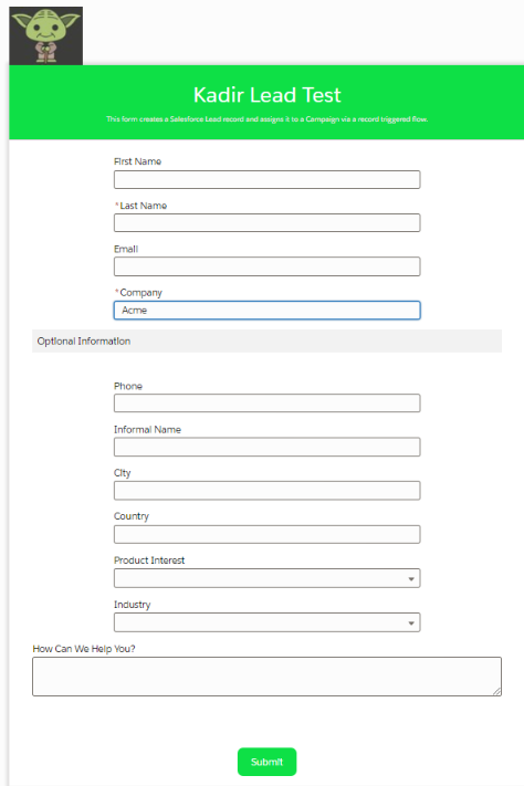 In this example, I kept it simple and picked Lead as the primary and only object for this form. I also added a flow that adds the newly created Lead record to a Campaign based on the Lead Source field value.